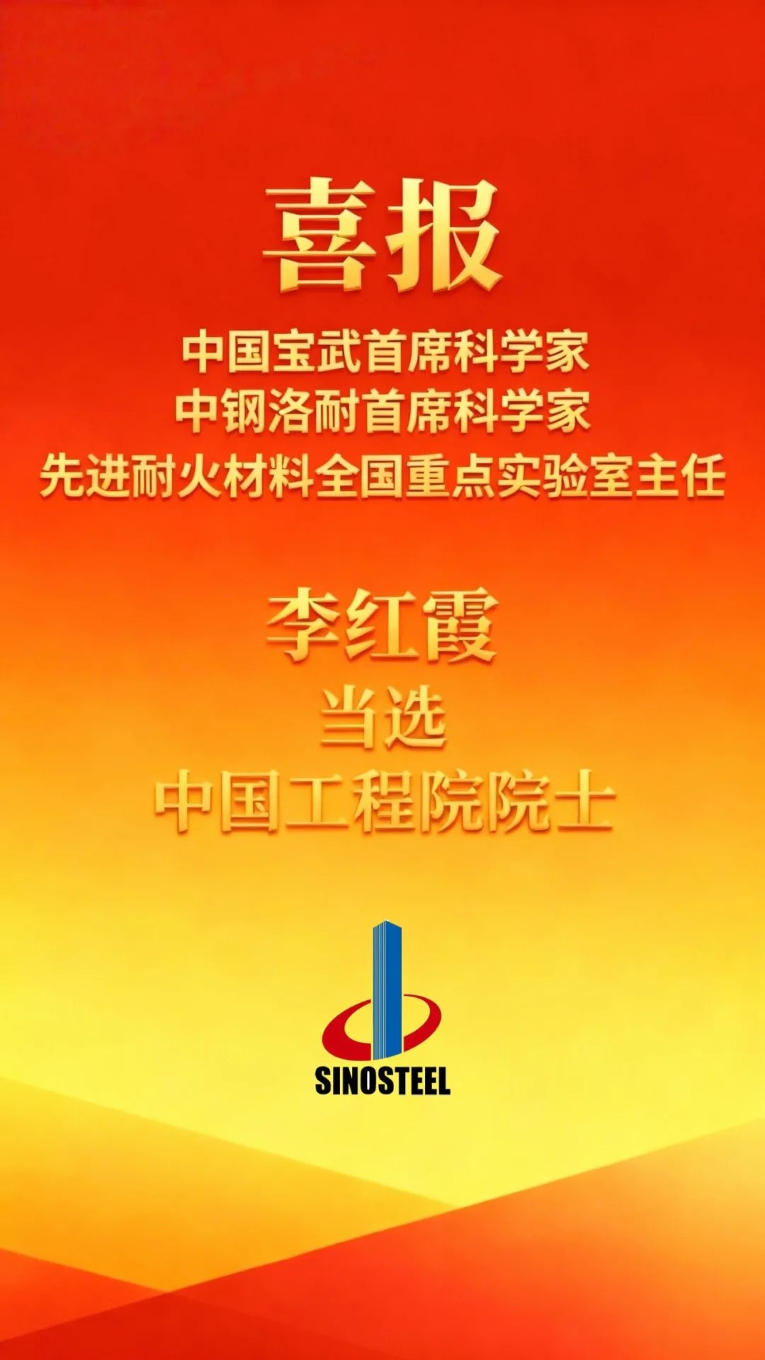 重磅喜訊!中國寶武首席科學家、中鋼洛耐首席科學家、先進耐火材料全國重點實驗室主任李紅霞,當選中國工程院院士!